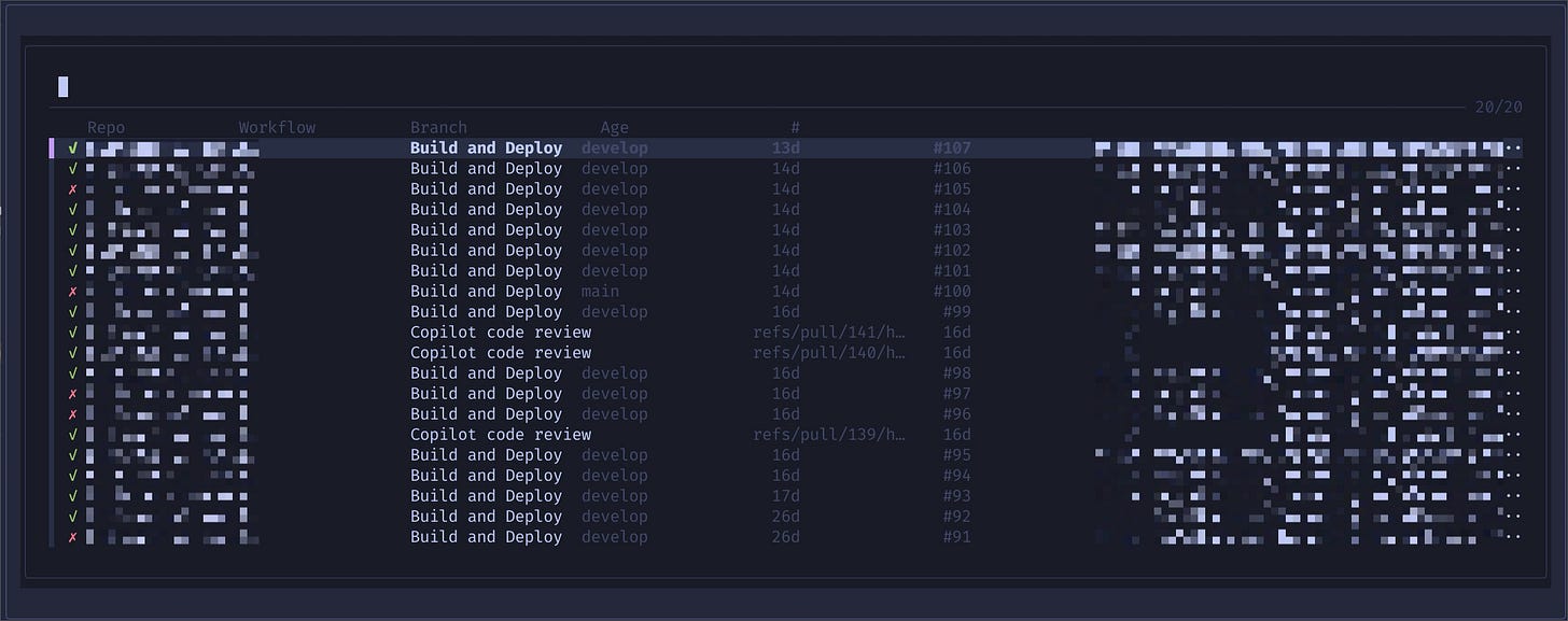 I had already used gh run list and gh run watch, and those are useful. But they are still one-shot commands, and the workflow around them is still repetitive. Check, wait, run again, check again. No persistent dashboard. No good view across multiple repositories. No tmux pane quietly sitting there and doing its job.